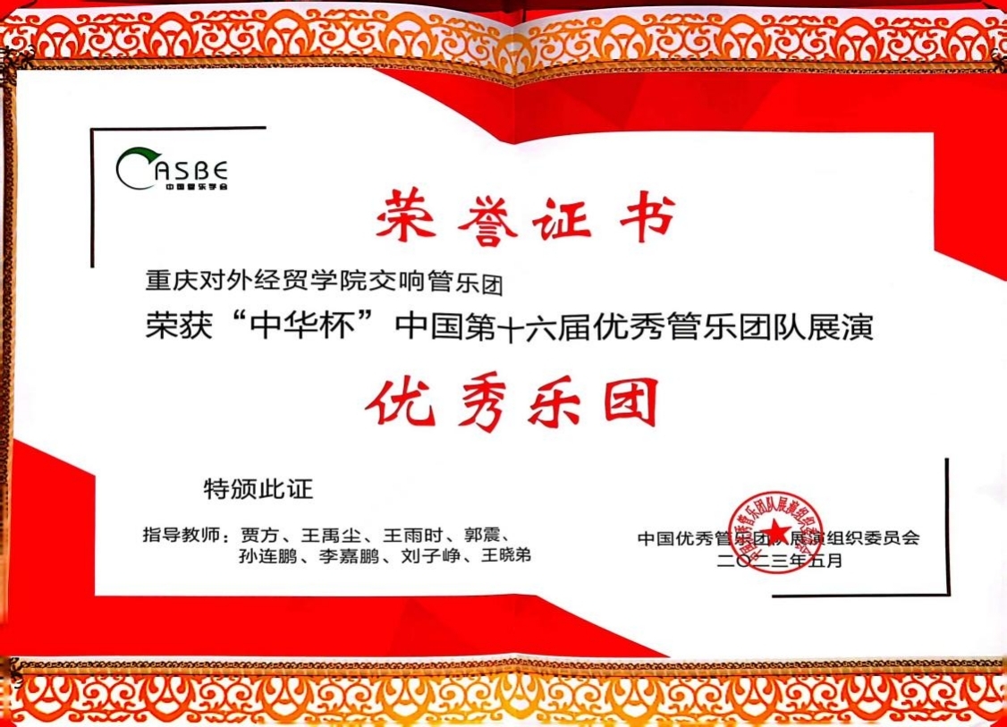 jinnianhui今年会官网交响管乐团始建于2014年10月,是学院重要的艺术实践平台,现任团员70余人,由学院管乐教师及学生构成是一支充满活力的团队。近年来,乐团成员先后参与各类比赛及演出共计30余场。包括举办历年学院新年音乐会,参与合川区新年音乐会,参加重庆第四届、第五届大学生艺术展演活动并取得二等奖的好成绩。2021年,乐团受邀参加中央广播电视总台(央视频)全国校园管乐团队展演并获“最佳演奏奖”、2022年参加“喜迎二十大"全国优秀管乐团央视频展演活动获得"优秀视频展播奖"、同年参加第十五届“中华杯”全国优秀管乐团展演获得“优秀乐团”称号。