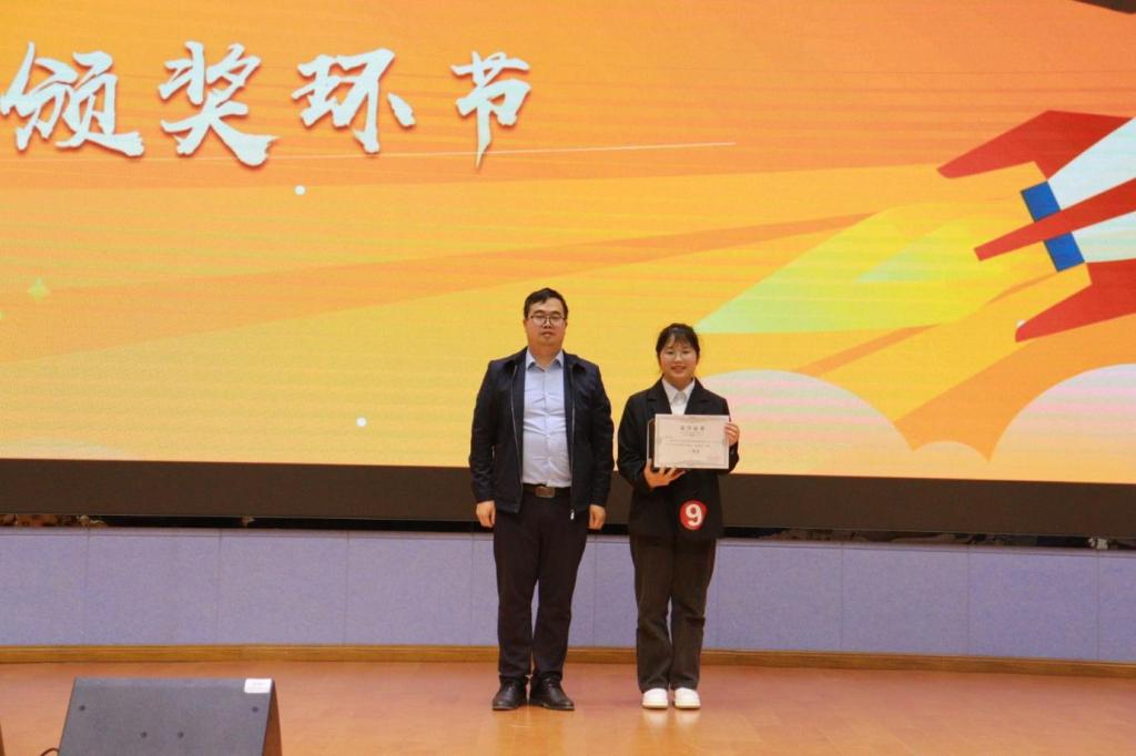 辅导员廖俊杰老师为三等奖获得者颁奖