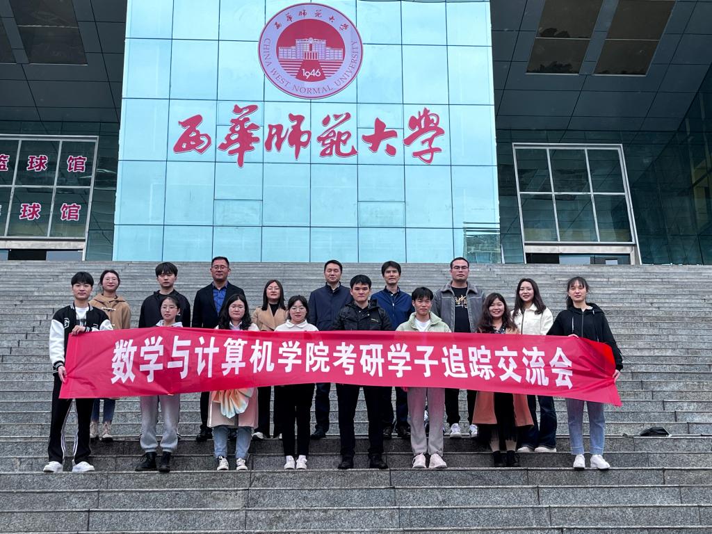 2023年4月23日,数学与计算机学院院长陈东升、党总支书记尹翔、副院长马秀芬一行来到西华师范大学。首先与由数学与计算机学院考入西华师范大学的11位研究生座谈交流,老师们了解其学习、生活和职业规划情况,学生们结合研究生阶段的学习经历向学弟学妹们提出了一些方法和建议,师生相谈甚欢、其乐融融。 然后与西华师范大学数学与信息学院领导班子进行了座谈会。双方就学院发展、师资队伍、人才培养、专业建设等进行了交流,为双方学院创新发展提供了思路和借鉴。 此次访企拓岗行动增加了师生了解,增强了兄弟院校情谊,将助推今年会高质量发展。