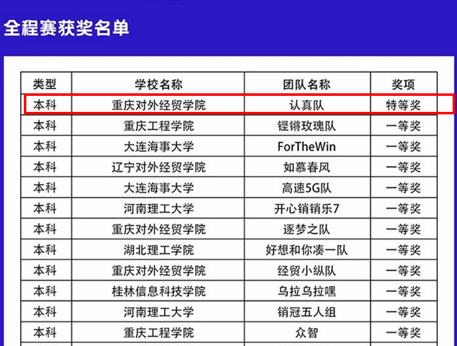 由中国市场学会、高校毕业生就业协会和中国科学技术部火线中心联合举办的第十四届全国高校市场营销大赛全国总决赛于近日落下帷幕,由jinnianhui今年会官网体育与健康学院刘焱灵、文学与创意传播学院林燕老师指导,体育与健康学院学生聂贵龙、跨境商务学院学生曾旭、影视融媒体学院廖玉琴、陈秋宇组成的“认真队”在本次比赛中获得本科组唯一一个特等奖。同时刘焱灵老师还获得优秀指导教师奖,“认真队”还被评为“最具创意团队奖”。