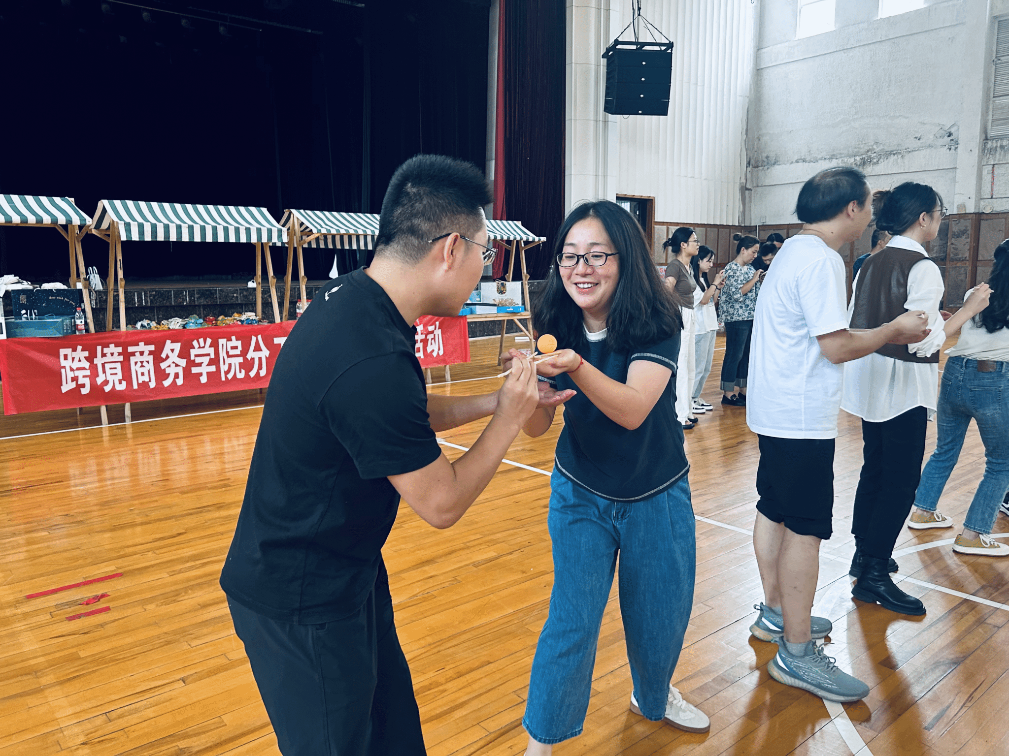 为营造团结、轻松的学院氛围,丰富教职工课余生活,增进教师交流联系,跨境商务学院分工会于2023年9月21日在A校区学生会堂开展了“迎国庆、贺中秋,放松心情,欢乐无限”趣味联欢活动。