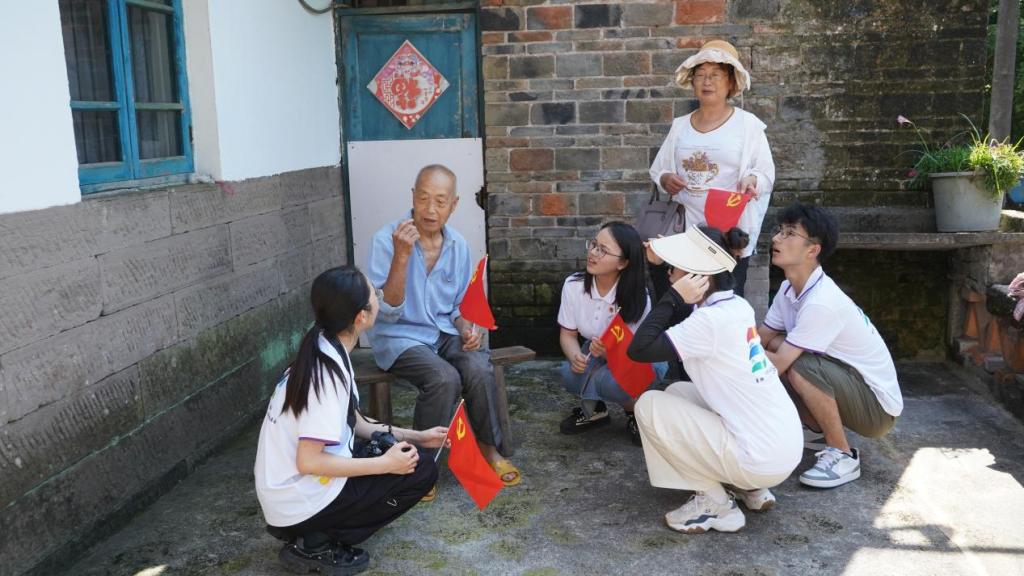 送去的是慰问,存留的是传承。志愿者们刚踏进党员的家里,老党员立刻拉出长凳,端来茶水,热血澎湃、激情四射地和同学们分享着过去的点点滴滴。“我们当时刚来到金土村的时候,人民还处在水深火热之中。我们几个驻村干部就带领着百姓一起开荒种地,当时的日子还是苦呢!”,听到老党员黄德宽的一席话,同学们不禁热泪盈眶,思绪瞬间把同学们拉回到了那个一穷二白的年代。“你们年轻一代一定要坚决拥护中国共产党,好好学习,天天向上!”,这是党员们对同学们的殷切期盼。