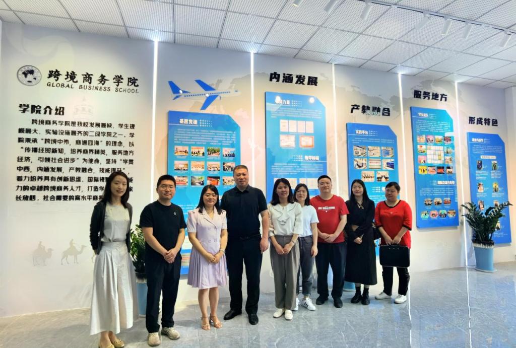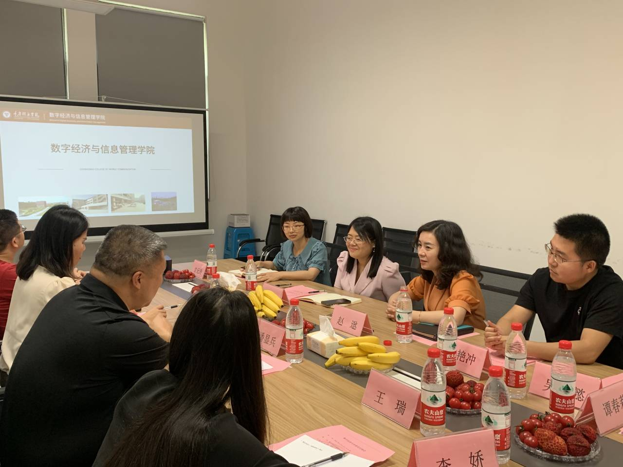 为共同探索数字经济专业建设的新路径,共谋数字人才的新发展,全面提高人才培养质量,2023年6月6日上午,重庆移通学院数字经济与信息管理学院院长潘显兵、副院长任瑞娟、院办公室主任廖阳及数字经济教研室骨干教师等一行来跨境商务学院交流。跨境商务学院院长赵逖、副院长李艳、数字经济教研室主任甘元玲及专业教师参加了此次交流会。双方就数字经济专业建设相关方面进行了深入探讨与交流。