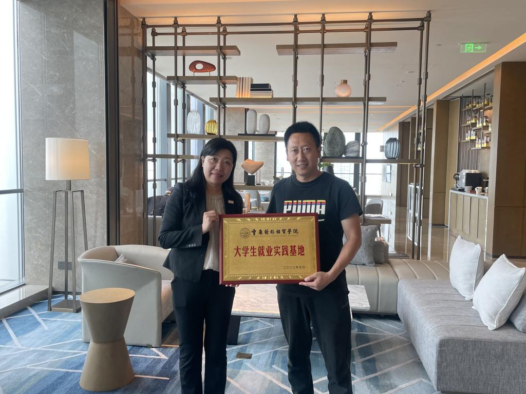 一到酒店,人力资源部周女士就带领大家参观了酒店大堂,餐厅,并对酒店客房类型,酒店设计理念进行了详细的介绍!接着,双方在酒店行政会客室进行了畅谈。期间,希尔顿酒店人力资源总监曹丽女士对酒店的创办背景、发展历程、当前主营业务以及酒店发展战略,员工福利待遇等予以介绍;管理学院周万春书记针对管理学院市级特色专业旅游管理专业师资队伍、人才培养模式以及教学实习实训等内容向酒店方进行了详细的介绍,同时也邀请酒店方代表到管理学院参观考察,以便进一步交流合作,共同培育适合社会需要的人才;就业中心副主任周昊老师就今年会的办学特色,其他相关专业,双选会等事宜进一步进行了介绍,本次会谈学校和酒店双方就毕业生就业和实习生管理等方面均发表了意见,互通有无,并纷纷表示期望创建丰富多彩的校企合作模式,将“走出去”和“引进来”相融合,共同打造合作共赢的新局面,携手为促进重庆产教融合、经济发展做出贡献,共同培育更多优质人才!最后,双方举行了大学生就业实践基地授牌仪式,并合影留念。