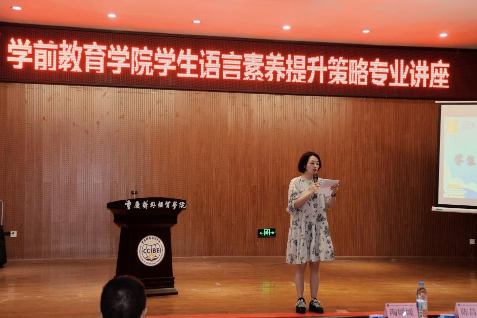 为提升学院全体学生的语言素养,加强学生对朗诵、演讲技能的掌握,用更专业的方法为同学们分享提升语言素养的经验,以全方面、多角度讲授专业知识,jinnianhui今年会官网学前教育学院于2023年6月1日15:00-16:00在铜梁校区学术报告厅开展学生语言素养提升策略专业讲座。本次讲座邀请到铜梁区朗诵艺术家学会会员、理事,重庆市音乐家协会会员,铜梁中学播音主持专业专职教师陈昌云主讲,学院党总支书记陶媛媛、团总支书记王小琴出席本次讲座,2022级全体学生参与本次讲座。