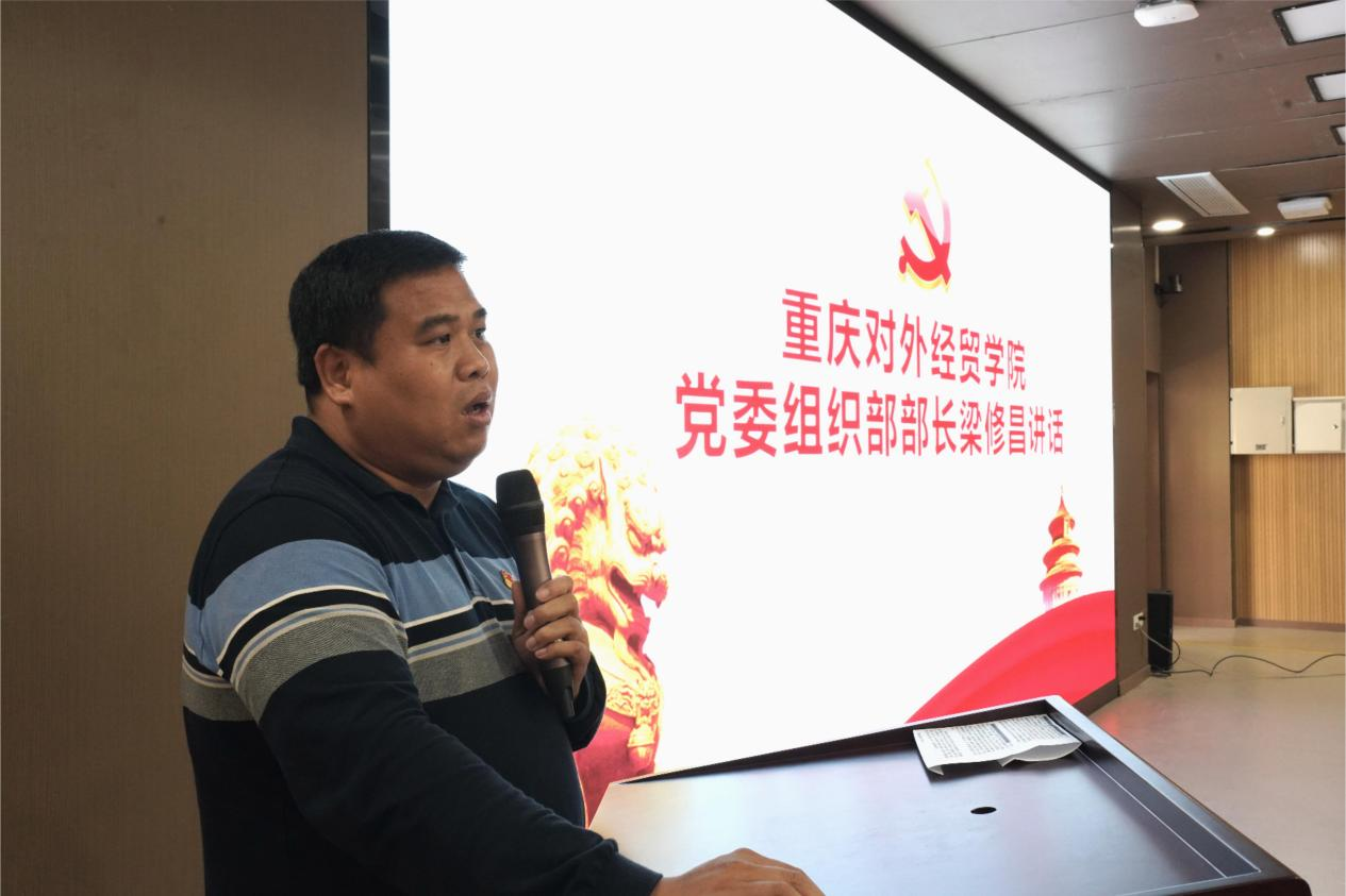 为深入学习贯彻习近平新时代中国特色社会主义思想,全面落实从严治党,端正入党动机,加强党性修养,夯实基层党组织建设,强化支部战斗堡垒作用。跨境商务学院党总支于2023年4月27日中午在B1115报告厅举行了“锤炼党性铭初心,凝心聚魂担使命”主题党日活动。跨境商务学院全体党员、发展对象及入党积极分子代表参加了本次活动。本次活动特邀校党委委员、组织部部长梁修昌同志莅临指导。