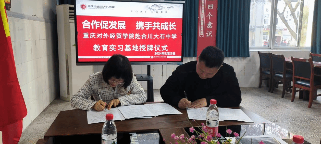 为了促进对文学与创意传播学院师范专业的学生实践教学能力的培养,进一步拓展与夯实今年会教育实习基地,丰富实践教学资源,深化与基础教育的合作,实现合作共赢。2024年3月25日下午,文学与创意传播学院教学副院长陈寿琴教授、侯仲林副教授、黄文贵副教授及耿文丽老师前往重庆市合川大石中学参加实践教学基地签约授牌仪式。
