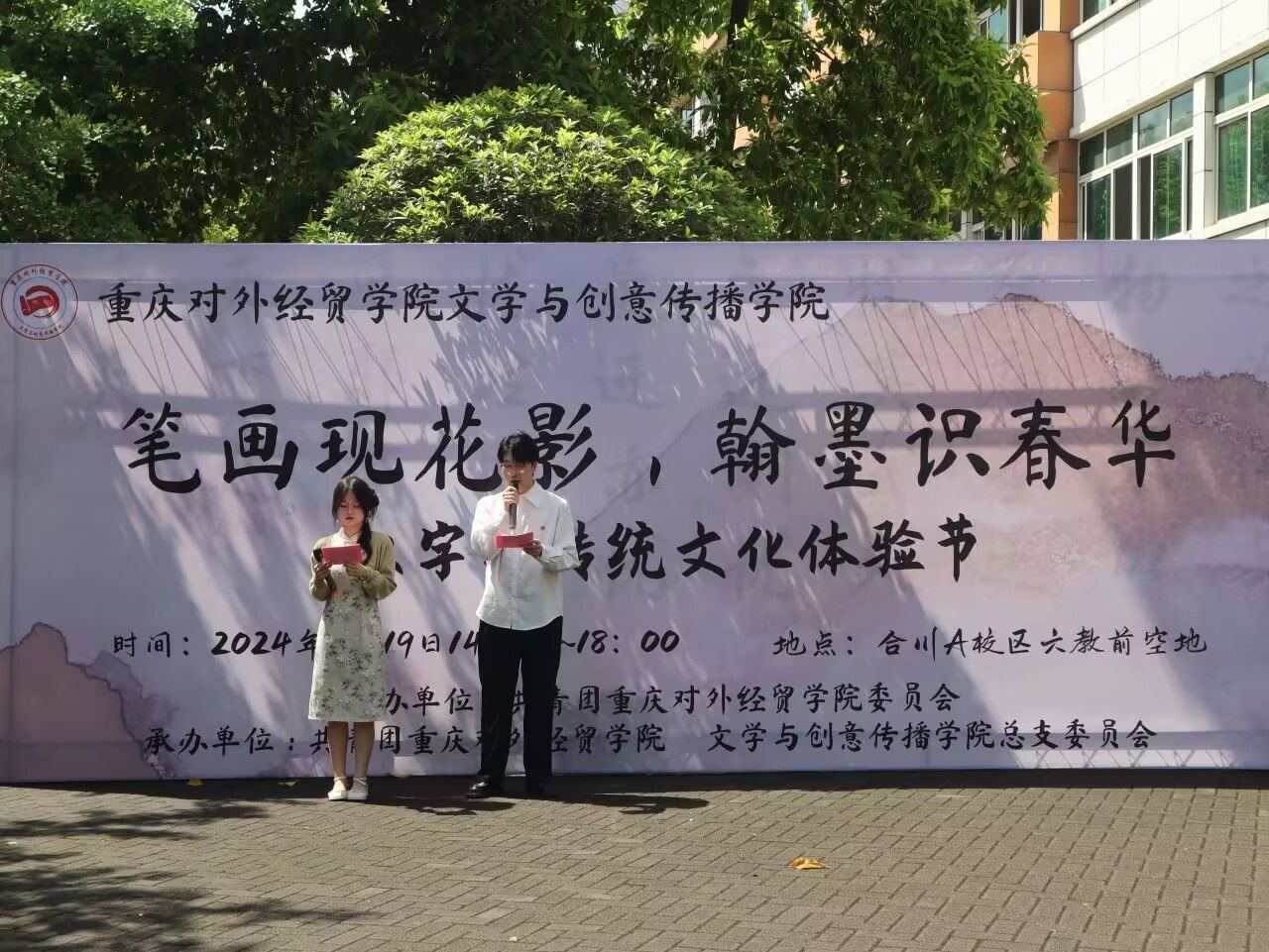 为承文化之源、赏汉字之美、聚文墨之才,文学与创意传播学院于2024年4月19日(周五)下午14:30,在合川A校区六教前空地举办了“笔画现花影,翰墨识春华”汉字与传统文化体验节。
