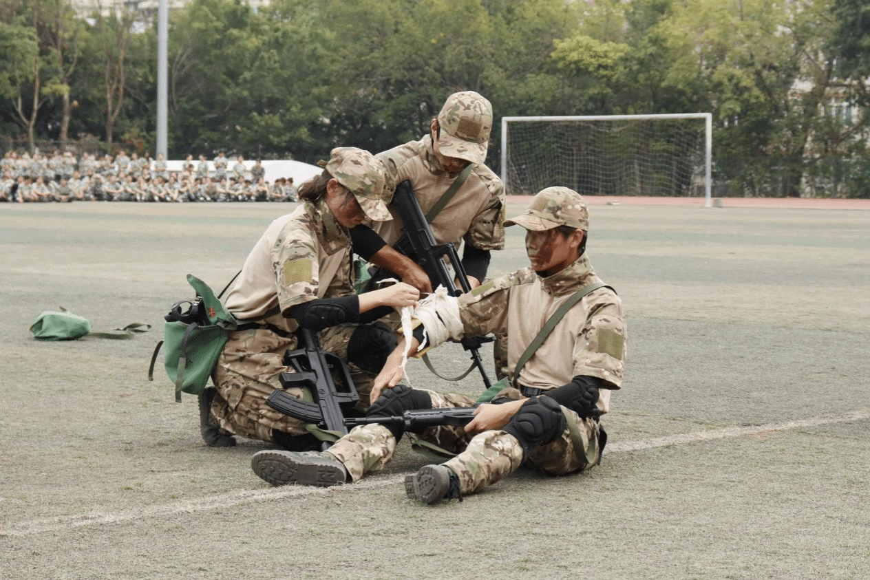 此次军训大比武包括队列方阵、整理内务、九五式自动步枪分解结合、卫生与救护、刺杀操、防爆队形以及战术等多个项目。