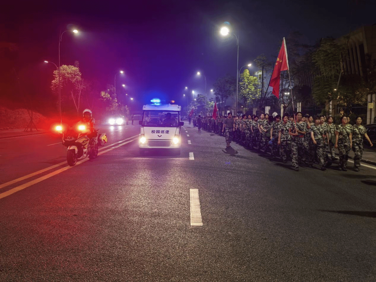 本次拉练活动,学生人数多,队伍长,沿途经过多个路口,部分路段人流、车流量大,除了值班人员,保卫处、校卫队全体成员全部下沉一线,在拉练队伍出发前全部就位。执勤交巡警们骑着巡逻摩托车,有的在拉练队伍最前方开路,有的在拉练队伍旁边随行。遇到人行横道、转弯和转盘等重要路口,交巡警采取临时交通管制、现场疏导指挥。道路引导小组的安保人员协助交警,引导过往车辆和行人避让,护送拉练队伍安全通过十字路口。