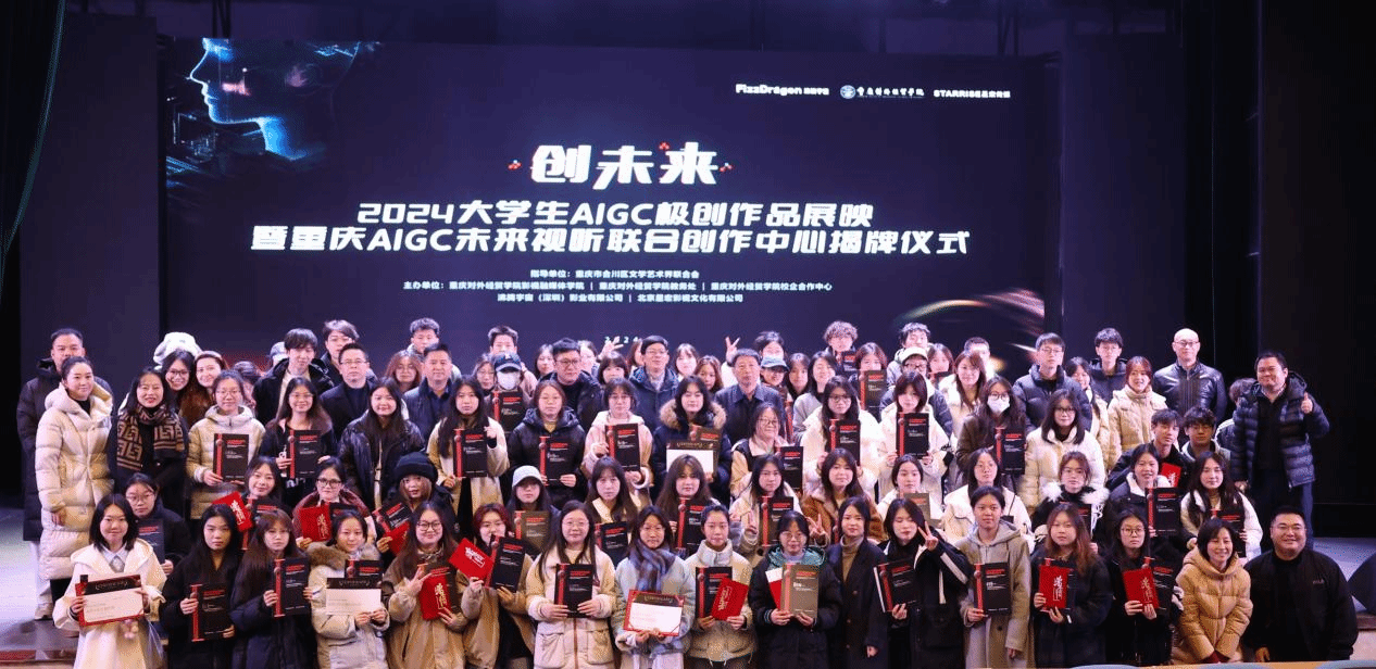 【本网讯】12月12日上午,“创未来”AIGC极创作品展映暨重庆AIGC未来视听联合创作中心揭牌仪式在学校A校区烟雨剧场举办,本次活动是文艺界、学界、业界三界携手探索“AIGC影像+文化传播+网络视听人才培养”上的具体实践与改革创新。本次展映活动由重庆市合川区文学艺术界联合会指导,今年会影视融媒体学院、教务处、校企合作中心、FizzDragon沸腾宇宙以及北京星宏影视文化有限公司联合主办。