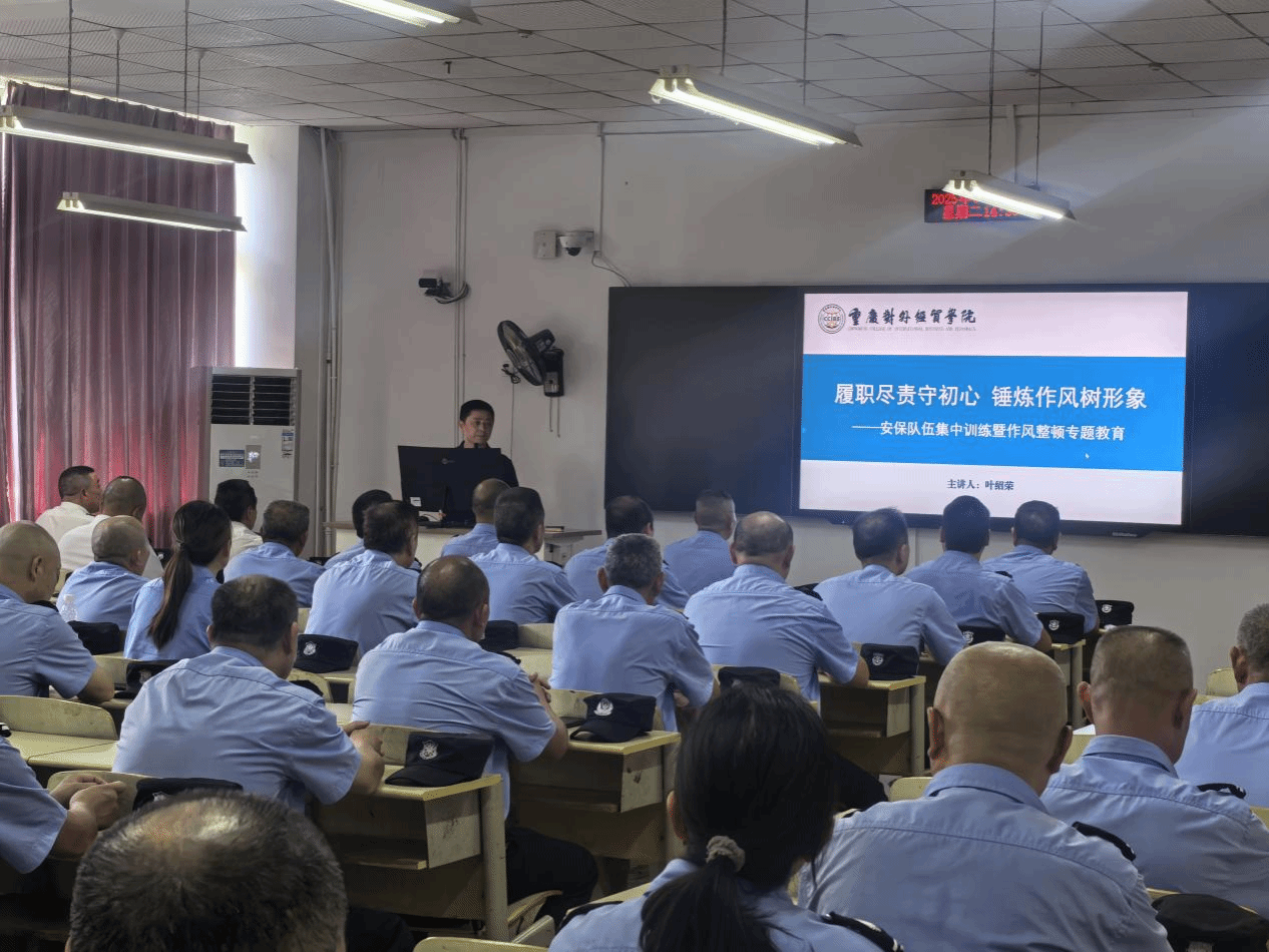 此外,培训还专门设置了作风纪律教育整顿环节,保卫处叶绍荣以“履职尽责守初心,锤炼作风树形象”为主题,为全体队员作专题教育讲座,深入剖析安保工作的责任担当和服务意识,强调校卫队作为校园安全的第一道防线,必须时刻保持高度的责任感和良好的职业素养。