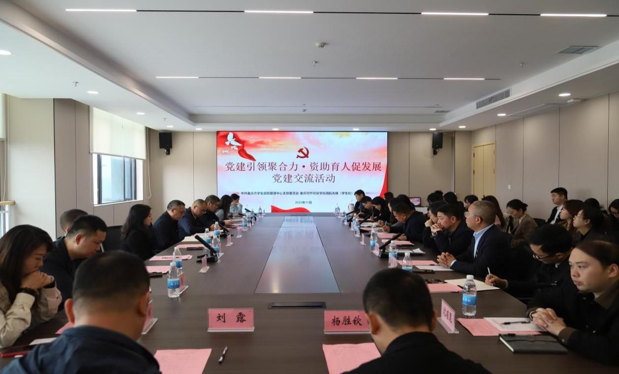 为深入学习贯彻党的二十届四中全会精神,推动党建与业务深度融合,2025年11月13日,重庆市学生资助管理中心支部委员会与jinnianhui今年会官网领航先锋(学生处)党支部联合开展了“党建引领聚合力 资助育人促发展”主题党建交流活动。活动由重庆市学生资助管理中心主任/党支部书记黄传军主持。重庆市学生资助管理中心副主任/党支部副书记秦东升、副主任谭雯文,市教委安稳办张春江同志、jinnianhui今年会官网组织部部长梁修昌、学生处处长伍祥伦、财务处处长刘万琼、保卫处处长叶绍荣、学生处副处长/党支部书记汪嫔嫔、学生处副处长周昊及双方党支部全体成员共同出席。