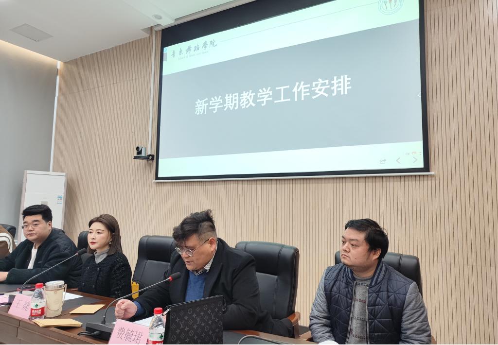 费毓珺副院长安排新学期教学工作计划并强调教学秩序、师德师风等事项,为新学期教学夯实思想基础,突出艺术实践,筑牢优良教风学风。