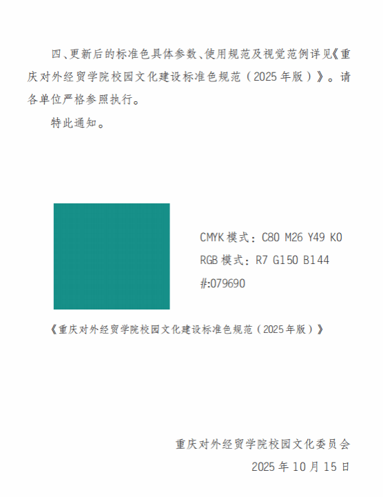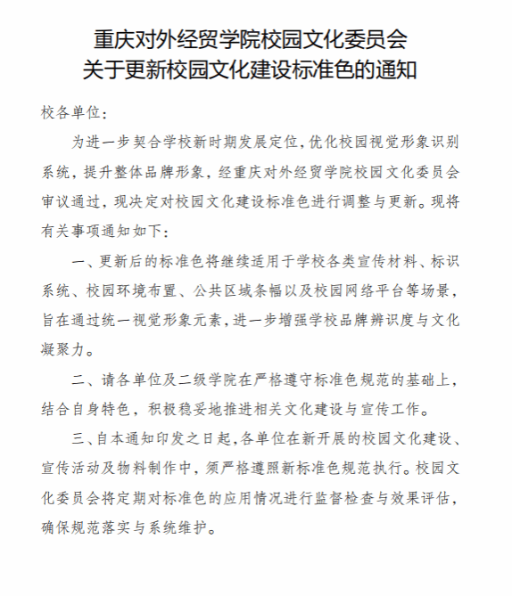 关于更新校园文化建设标准色的通知