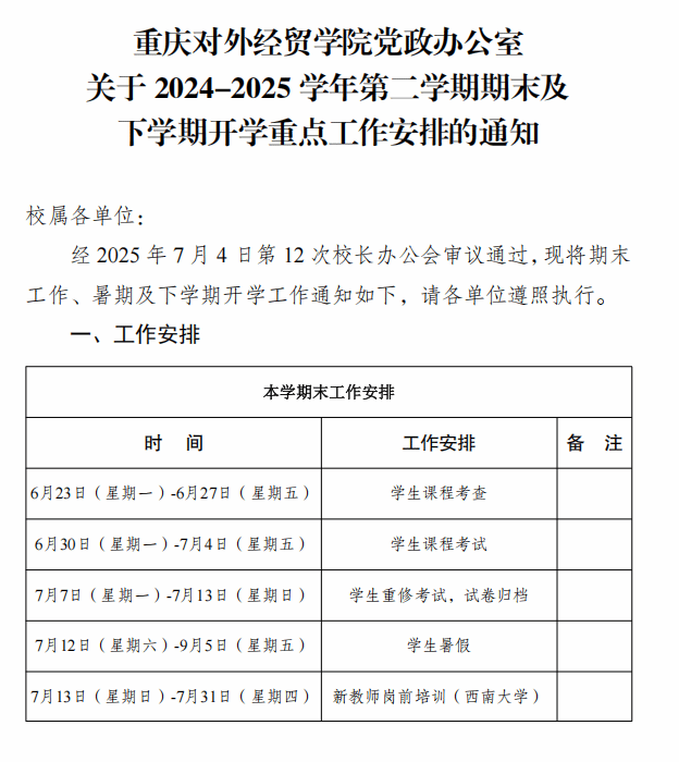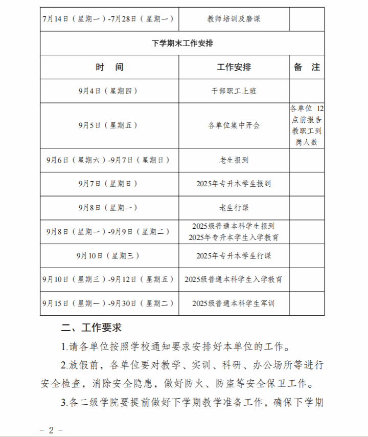 关于2024-2025学年第二学期期末及下学期开学重点工作安排的通知