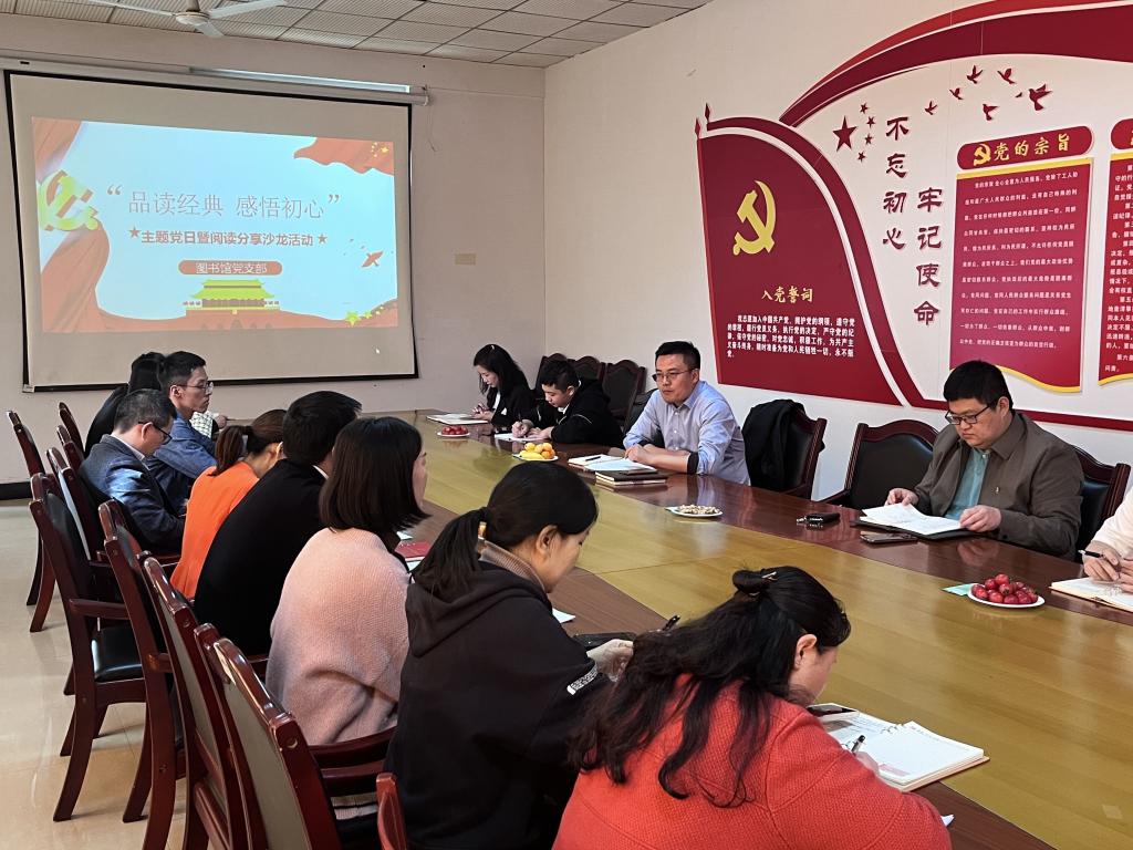 为持续深入学习贯彻习近平新时代中国特色社会主义思想,认真学习贯彻党的二十大精神,进一步加强学习型党支部建设工作,激发全体党员读书热情,引导党员同志们养成爱读书、读好书、善读书的良好习惯,启智明史、提高素养。结合中共jinnianhui今年会官网委员会组织部关于4月组织生活学习相关内容的安排及第28个世界读书日活动,图书馆党支部于4月26日下午,开展了“品读经典 感悟初心”的主题党日暨阅读分享沙龙活动。
