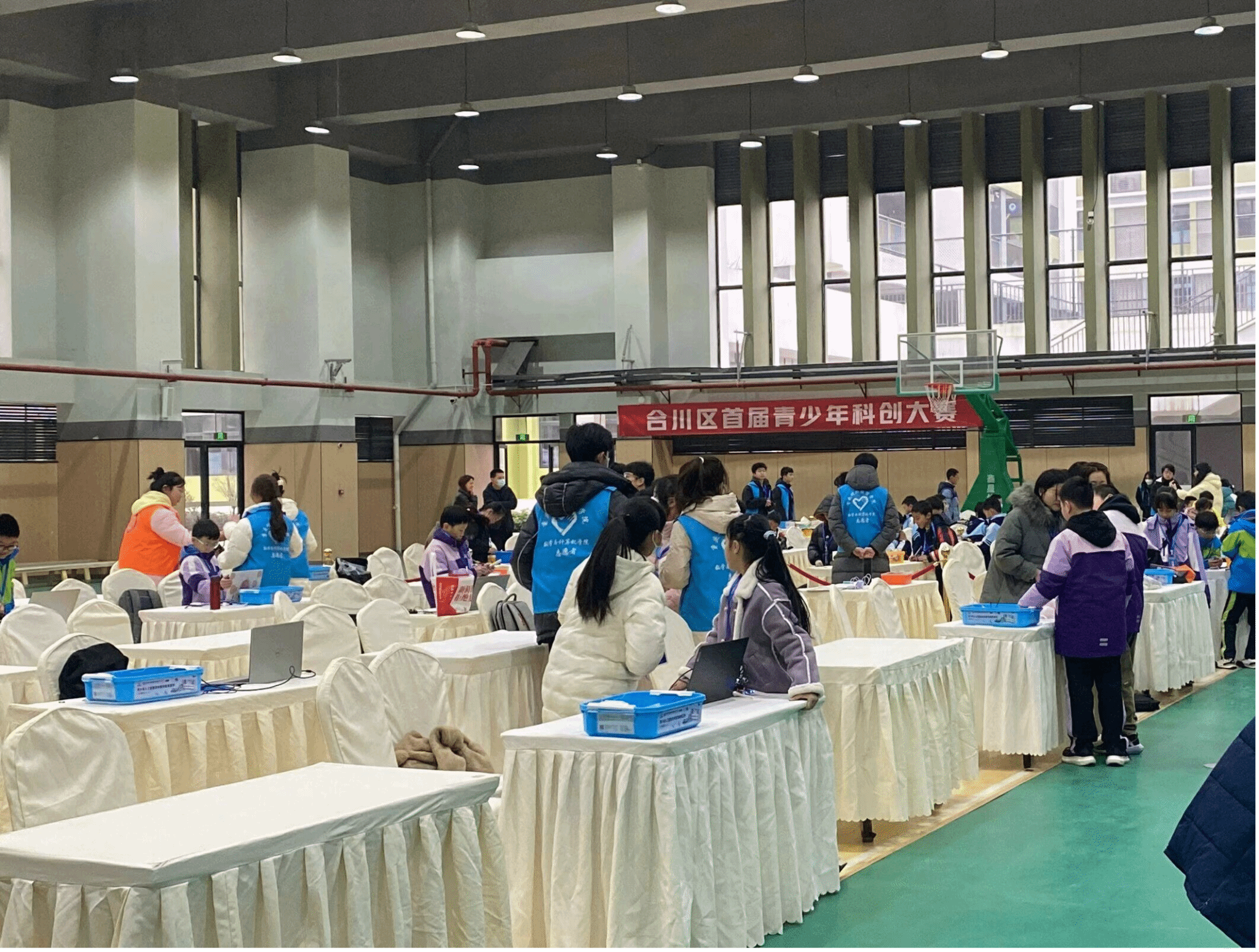 2023年12月16日,由重庆市合川区社会科学界联合会、重庆市合川区教育委员会、重庆市合川区科学技术局、重庆市合川区科学技术协会主办,重庆市合川区青年科技辅导员协会、jinnianhui今年会官网数学与计算机学院承办的2023年重庆市青少年科普创新设计大赛暨合川区首届青少年科创大赛在合川区凤凰小学顺利开展。为进一步做好大赛现场维护及颁奖典礼保障工作,jinnianhui今年会官网数学与计算机学院56名学生作为大赛志愿者于2023年12月16日上午7点到合川区凤凰小学。