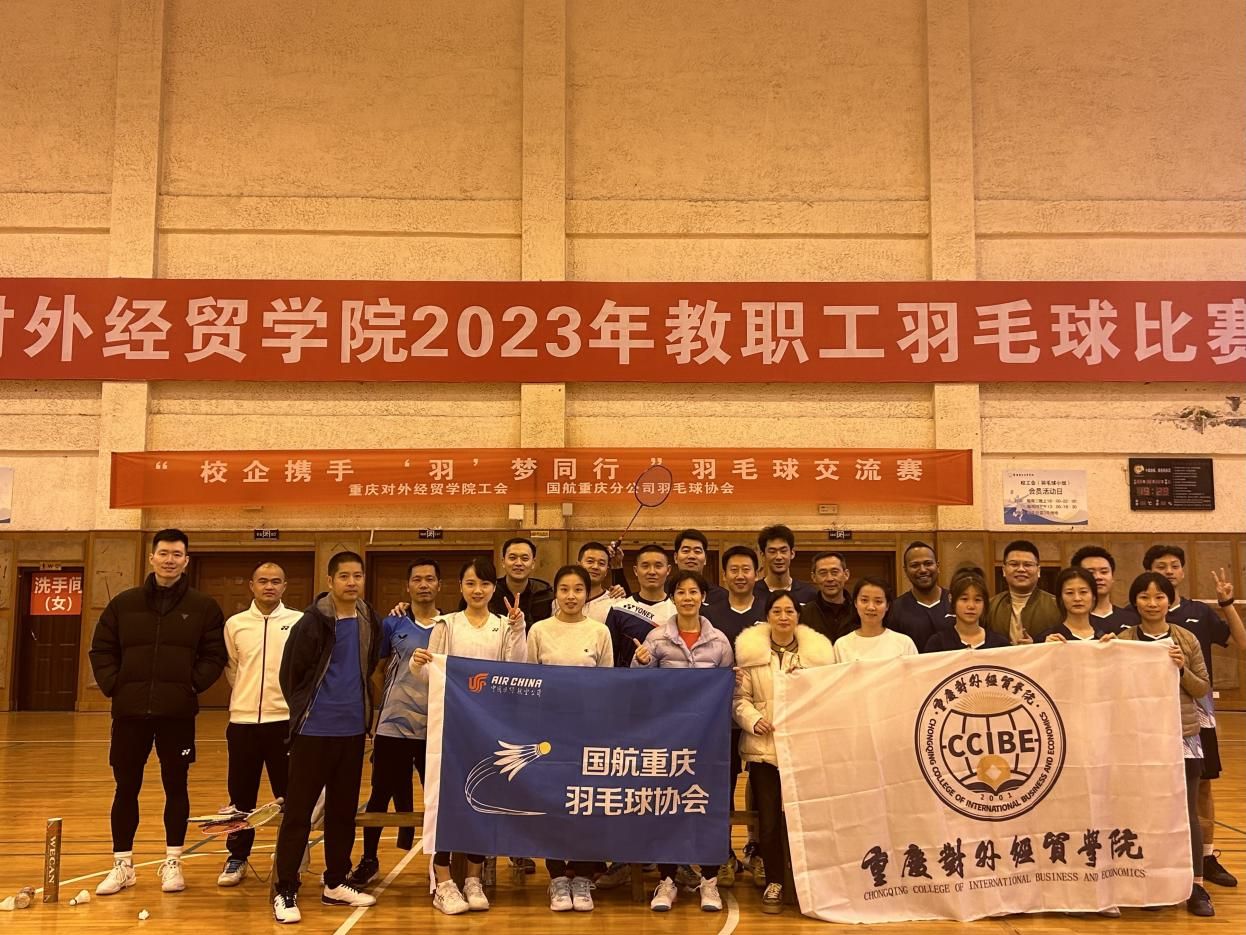 为深化校企合作,加强校企交流,2023年12月21日,校工会特邀中国国际航空公司重庆分公司羽毛球协会来校开展了“校企携手,羽梦同行”羽毛球交流赛。学校参加本次活动的有驻校理事、校工会经审委员会主任顾红,党政办公室副主任庞敏,管理学院党总支书记、校工会宣传委员兼羽毛球兴趣小组组长周万春及羽毛球兴趣小组成员。