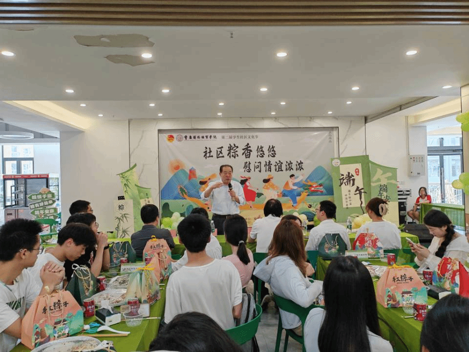 粽香悠悠送关爱,情谊浓浓伴成长。在端午佳节即将来临之际,为进一步弘扬中华民族优秀传统文化,丰富校园文化生活,营造温馨浓厚的节日氛围,体现对广大学子的慰问和关怀,6月6日下午,学校在B校区致园食堂开展“粽香悠悠,情谊浓浓”端午慰问活动。学校常务副校长王乃武、党委学生工作部部长、艺术设计学院院长等领导一行莅临出席,各学院教师及学生代表参与此次活动。