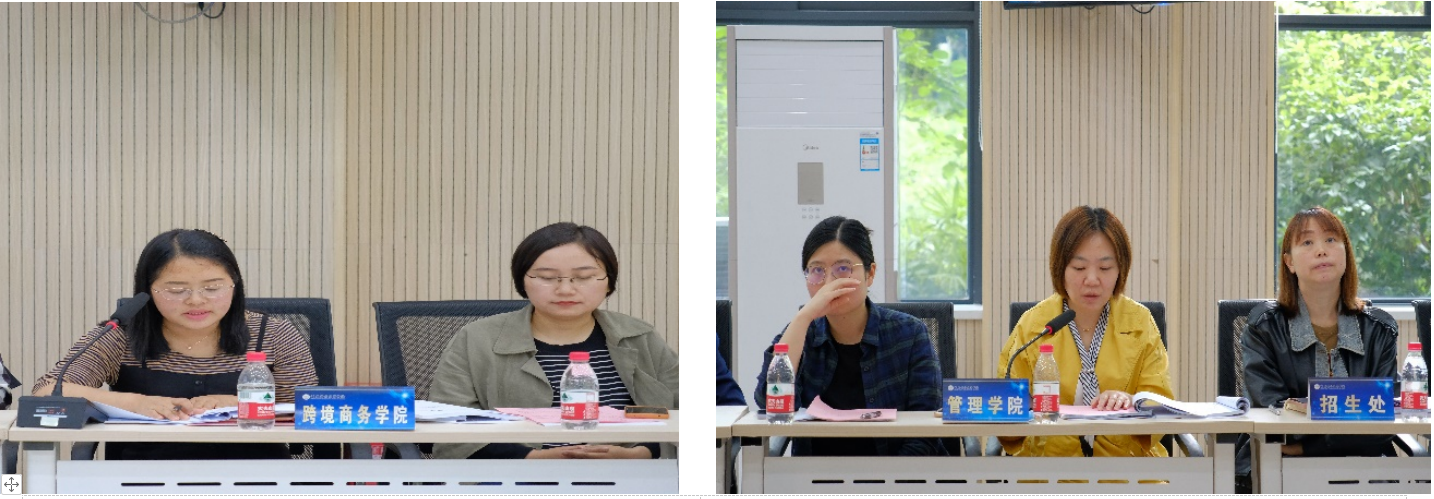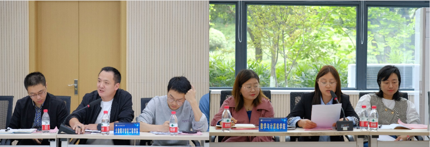 随后,跨境商务学院副院长李艳、管理学院副院长雷勤颖、大数据与智能工程学院副院长唐士、数学与计算机学院副院长马秀芬分别就特色学科专业群规划与建设、校级一流专业规划与建设、新增设专业的建设等作交流发言。