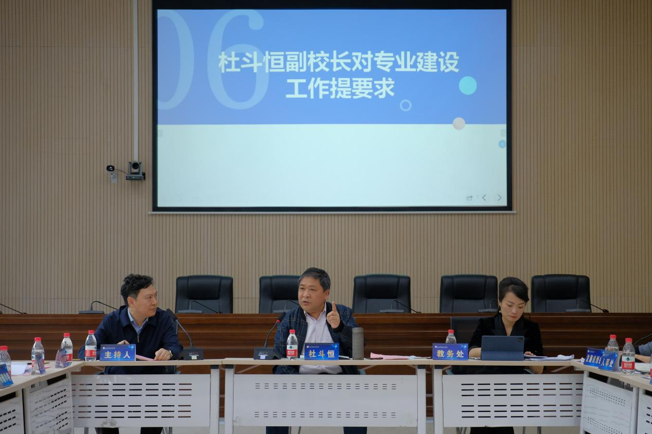 最后,学校副校长杜斗恒就专业建设提出了三点要求,一是坚持问题导向,求真务实,直面学校专业建设发展中的痛点难点问题,要看到与其他同类院校同专业的差距,解放思想,勇于创新,不断增强专业核心竞争力;二是夯实教师专业素养,各学院要注重培养教师在教学各个环节的的创新意识,进一步加大师资培养和人才引进力度,将专业建设与师资队伍建设形成合力,推动学校专业内涵发展;三是要主动对接国家及社会经济发展需要,结合自身专业,立足学校人才培养的目标找准切入点,修订人才培养方案,优化课程体系,提升课堂效率,提高人才培养质量。