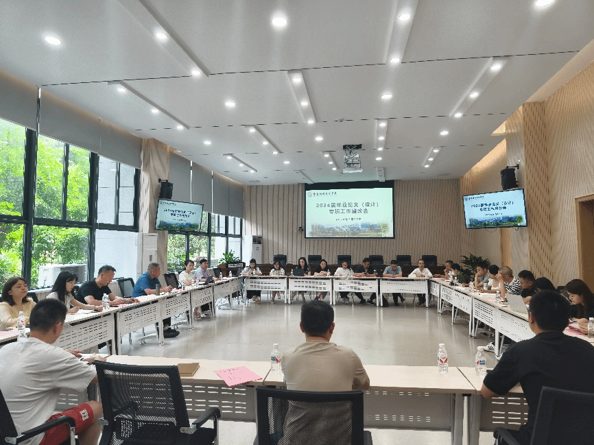 会上教务处实践教学管理科对2024届毕业论文(设计)工作的总体情况进行了介绍,并围绕当前工作中存在的文件解读不细致、管理制度不完善、评分标准不统一、信息传达不对等以及评分底气不充足五个方面的问题进行探讨交流。跨境商务学院、外语外贸学院和艺术设计学院副院长分别就学院在2024届毕业论文(设计)工作中的创新举措、存在问题和解决思路进行了发言。