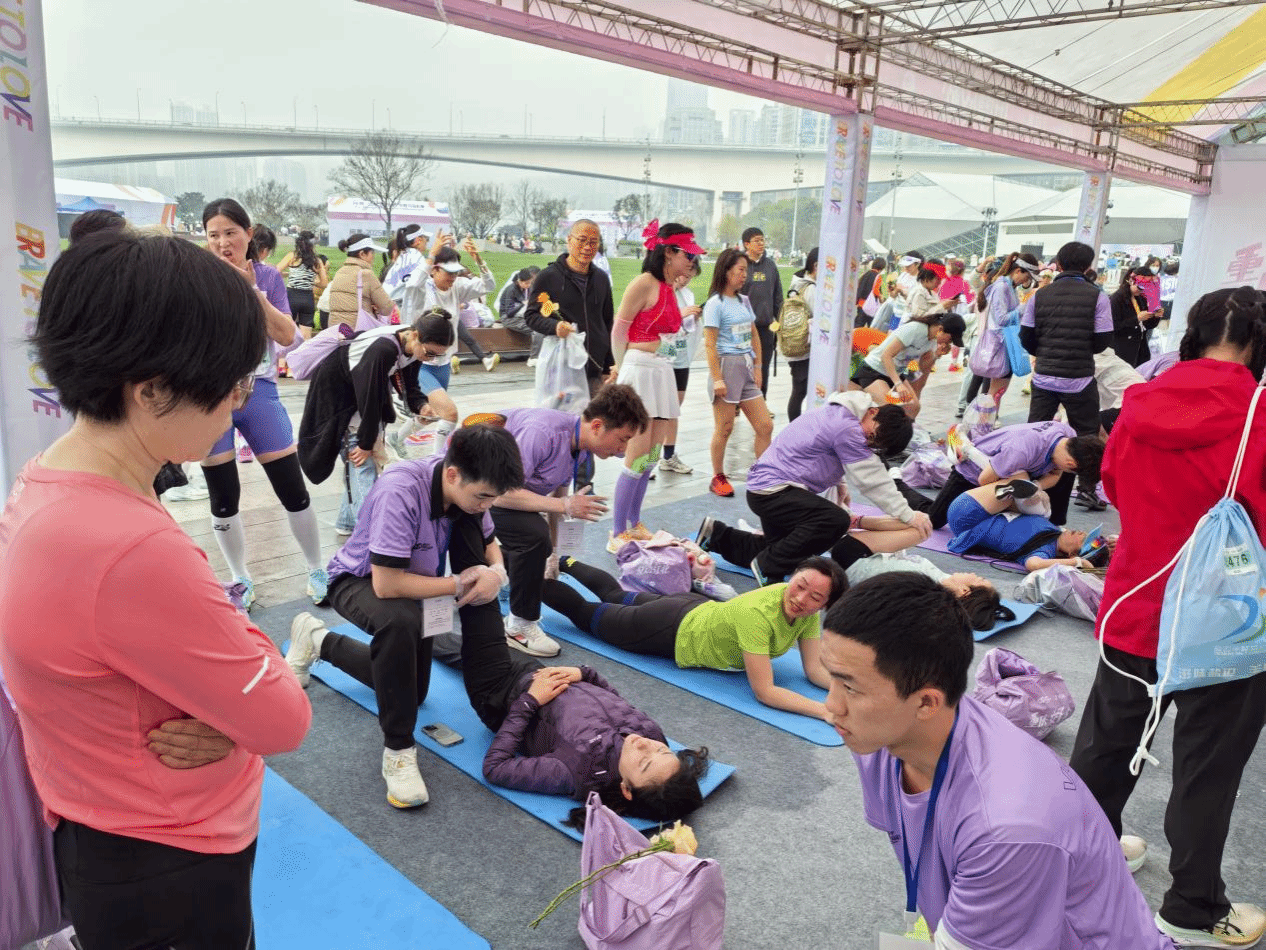 活动当日,志愿者们早早抵达现场,准备好各类拉伸放松工具。随着参赛选手陆续冲过终点线,志愿者们有条不紊地投入工作,根据每位选手的身体状况,运用专业的拉伸技巧,帮助选手们缓解肌肉疲劳,减轻运动后的酸痛感。