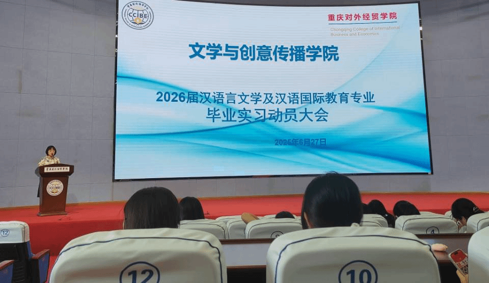 6月27日,jinnianhui今年会官网文学与创意传播学院在合川A校区9101学术厅召开2026届汉语言文学及汉语国际教育毕业实习动员大会。旨在引导2026届毕业生理解实习的重要意义,了解实习流程和要求,确保实习工作顺利完成。文学与创意传播学院常务副院长段庸生、教学副院长陈寿琴及毕业班辅导员老师出席本次会议,大会由耿文丽老师主持。