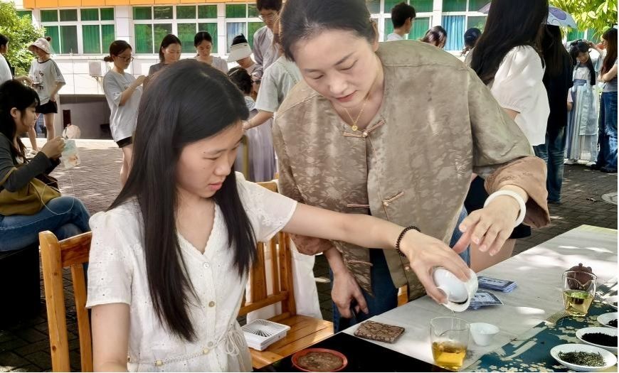 温纯老师指引同学进行茶艺体验