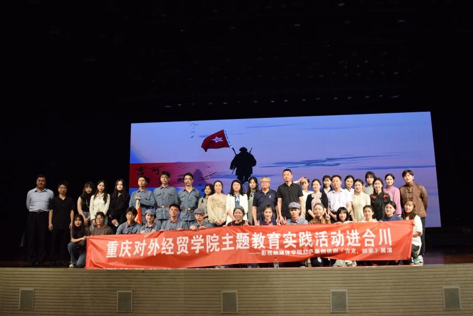 2021年,在合川区庆祝中国共产党成立100周年文化惠民活动周的戏剧曲艺专场,话剧《吉可,回家吧》面向大众成功首演。当大幕拉开,灯光亮起,周吉可的革命生涯与周美瞻的寻父之路在舞台上交织,那段穿越生死的对话响起时,台下许多观众潸然泪下。首演的成功,给了师生们巨大的鼓舞。随后,该剧受邀参加了“第四届重庆青年戏剧演出季”,并荣获“优秀展演剧目”称号。这不仅是对艺术创作的肯定,更是对这场特殊思政实践育人成效的认可。学生们在演出日志中写道:“通过扮演周吉可,我真正懂得了什么叫‘理想高于天’”“我好像触摸到了那段烽火岁月,理解了前辈的牺牲,更珍惜今天的和平”。
