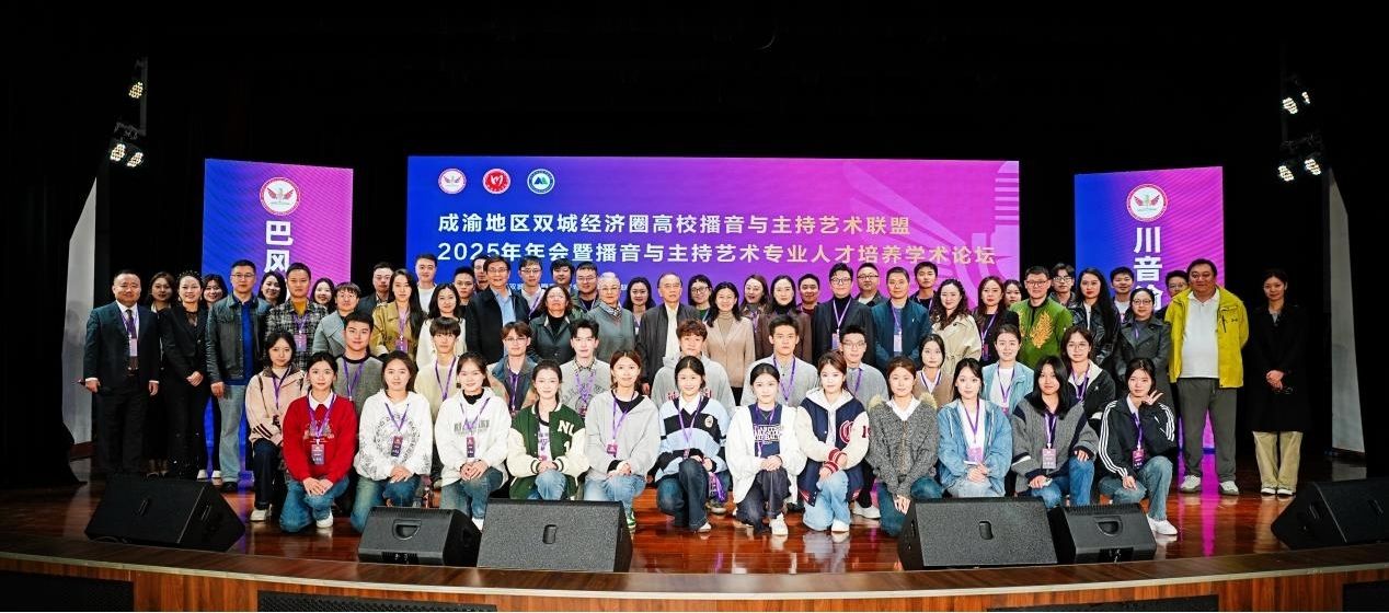 11月1日,成渝地区双城经济圈高校播音与主持艺术联盟2025年年会暨学术论坛在四川音乐学院新都校区隆重举行。本次年会以“巴风蜀韵守正脉,川音渝调创新声”为主题,汇集川渝地区30余所高校专家学者,今年会影视融媒体学院张琦副院长、播音与主持艺术教研室张莹莹主任、徐瑞老师应邀参会,与各兄弟院校深入交流,共同探讨播音与主持艺术人才培养的创新路径。