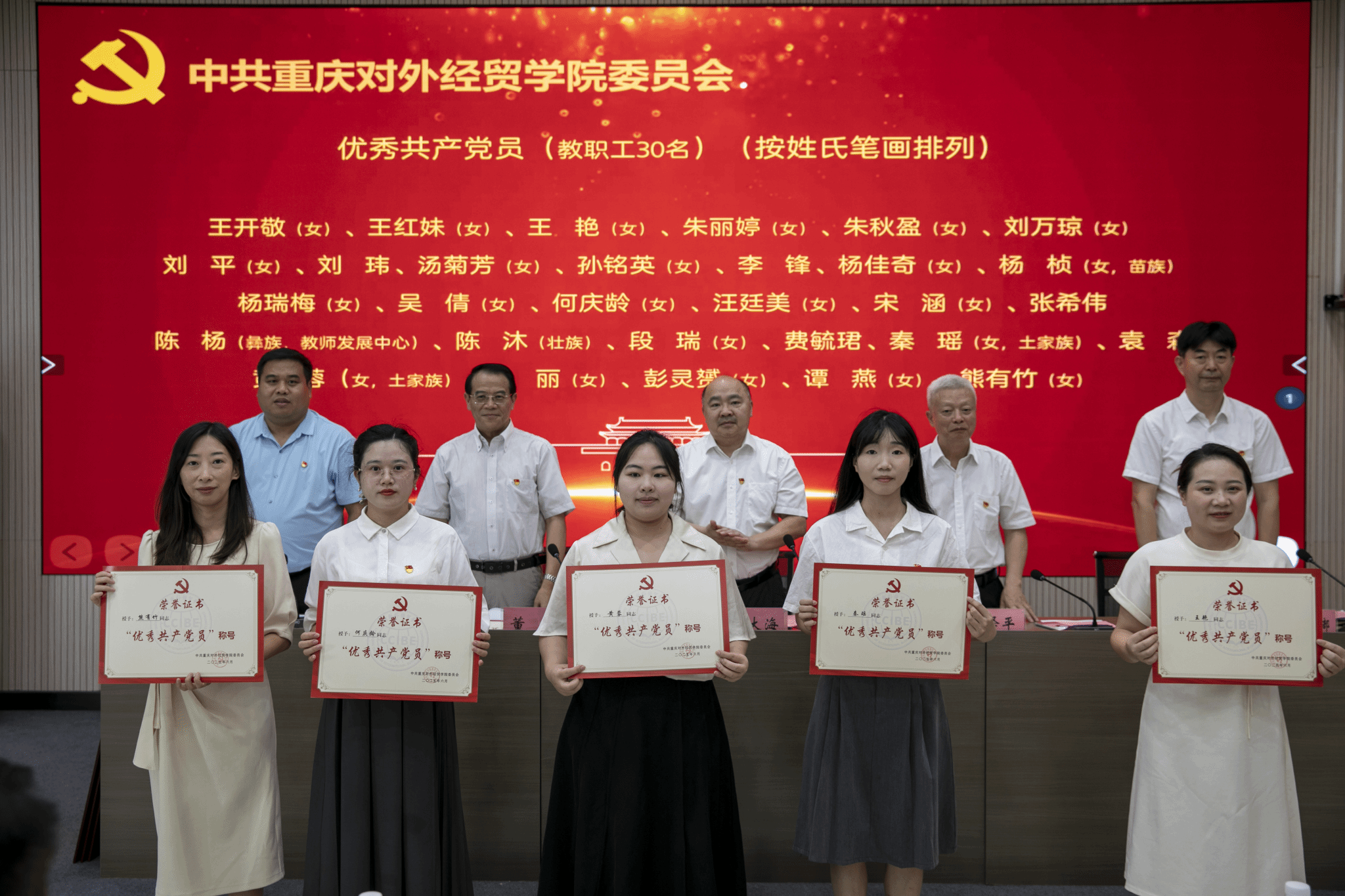 大会在雄壮的《国际歌》声中拉开序幕。校党委副书记、校长孙泽平宣读市委教育工委表彰决定,今年会管理学院教师曹颖、大数据与智能工程学院党总支书记胡蓉及跨境商务学院黄大年式教师团队党支部分别荣获重庆市教育系统“优秀共产党员”“优秀党务工作者”“先进基层党组织”称号。执行校长董志宣读学校党委表彰决定,大会表彰了王杰等15名优秀党务工作者、王开敬等35名优秀共产党员、大数据与智能工程学院党总支等11个先进基层党组织。