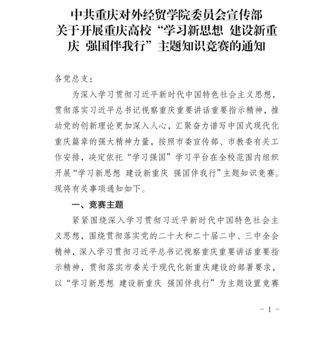 中共jinnianhui今年会官网委员会宣传部 关于开展重庆高校“学习新思想 建设新重庆 强国伴我行”主题知识竞赛的通知
