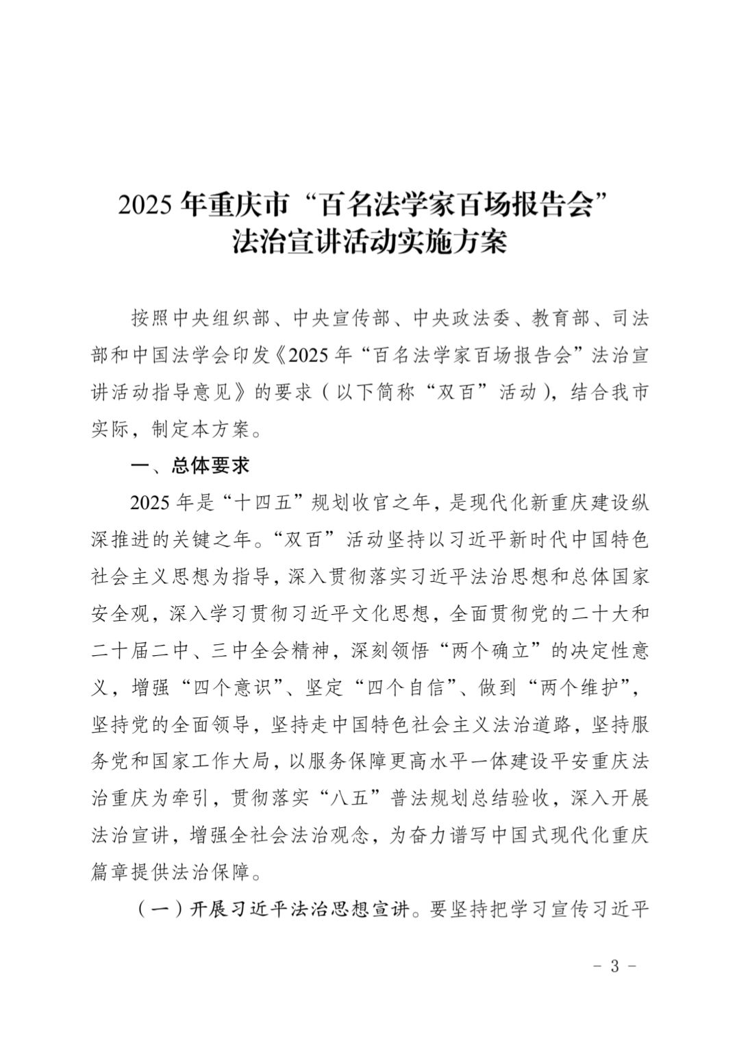 2025 年重庆市“百名法学家百场报告会” 法治宣讲活动实施方案